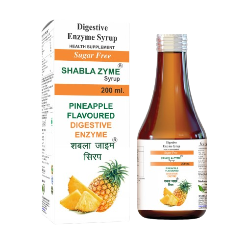 Shablazyme Syrup is a pleasant-tasting, digestive enzyme supplement that offers effective relief from indigestion, flatulence, bloating, and colic. Each 5 ml of Shablazyme contains carefully balanced amounts of Diastase (from Aspergillus oryzae) and Pepsin, two potent enzymes known for their ability to support the breakdown and assimilation of food.